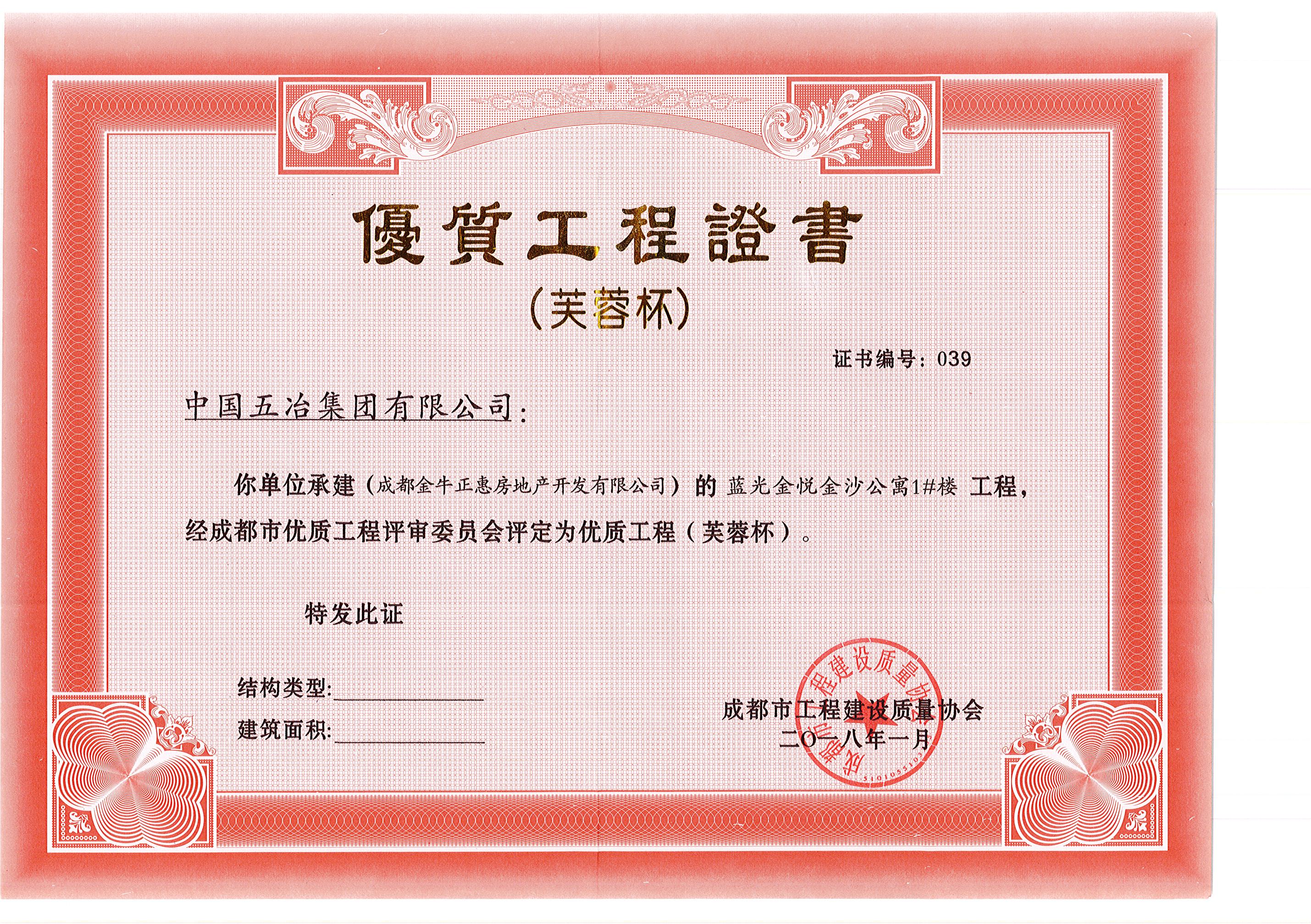 藍(lán)光金悅金沙公寓1#樓—2017年成都市芙蓉杯