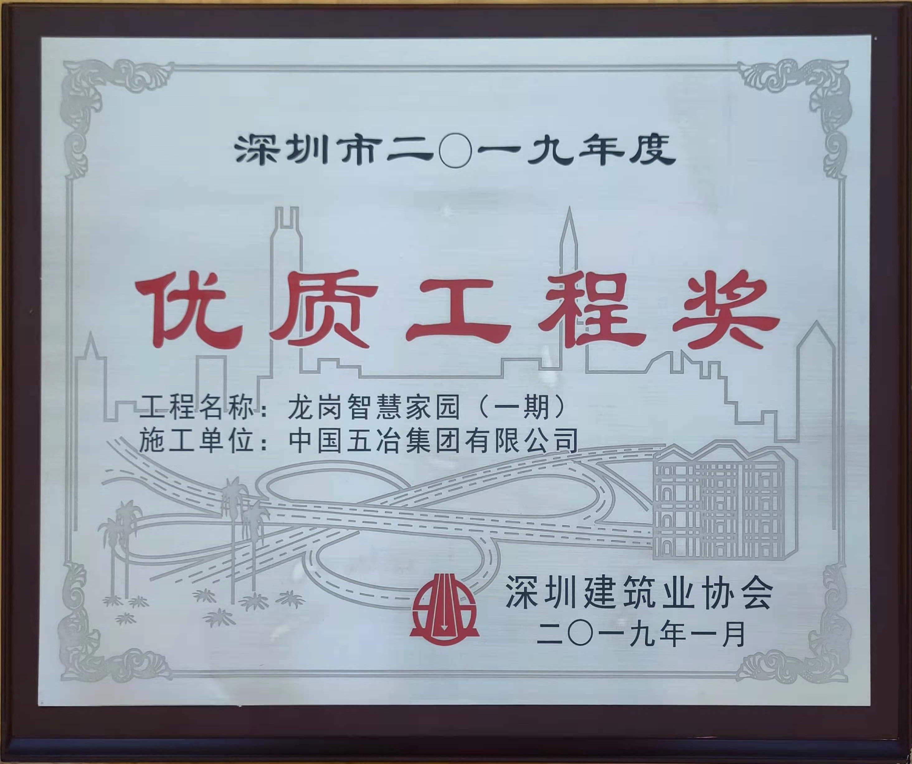 龍崗智慧家園(一期)榮獲2019年度第一批深圳市優(yōu)質(zhì)工程獎(jiǎng)