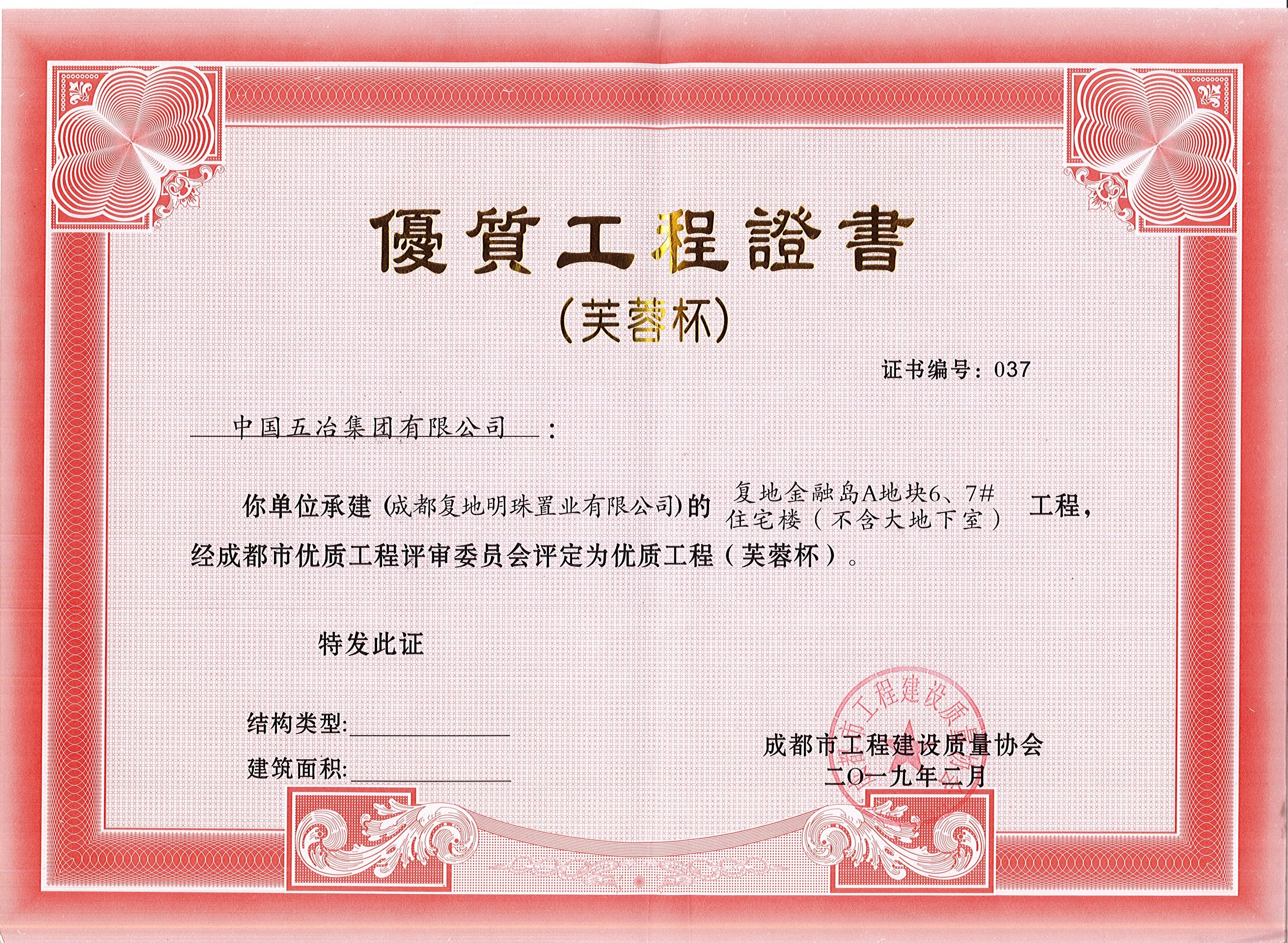 復(fù)地金融島A地塊6、7#住宅樓(不含大地下室)—2018年成都市芙蓉杯