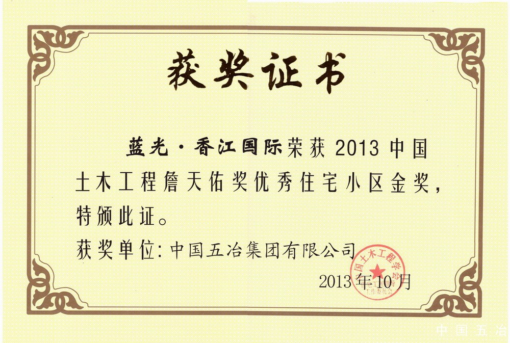 藍(lán)光·香江國際項(xiàng)目-2013年中國土木工程詹天佑獎(jiǎng)優(yōu)秀住宅小區(qū)金獎(jiǎng)