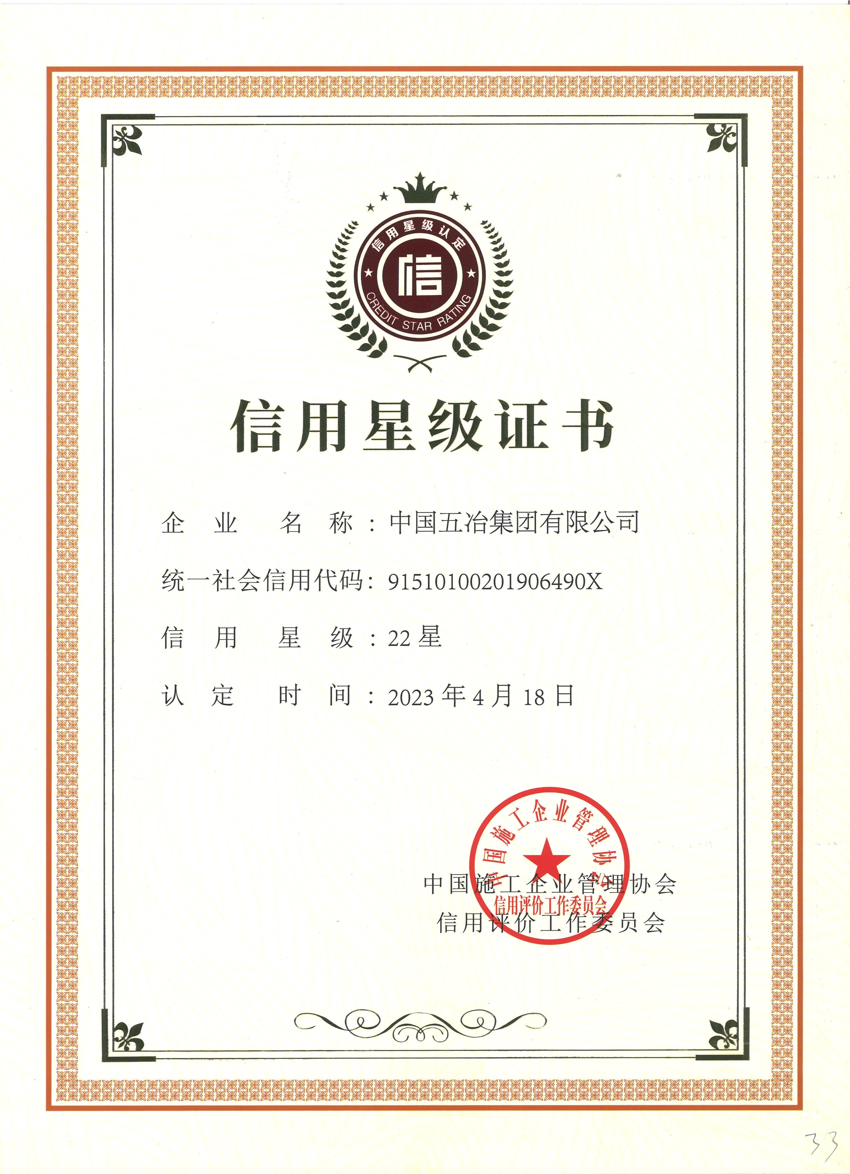 全國信用星級證書22星