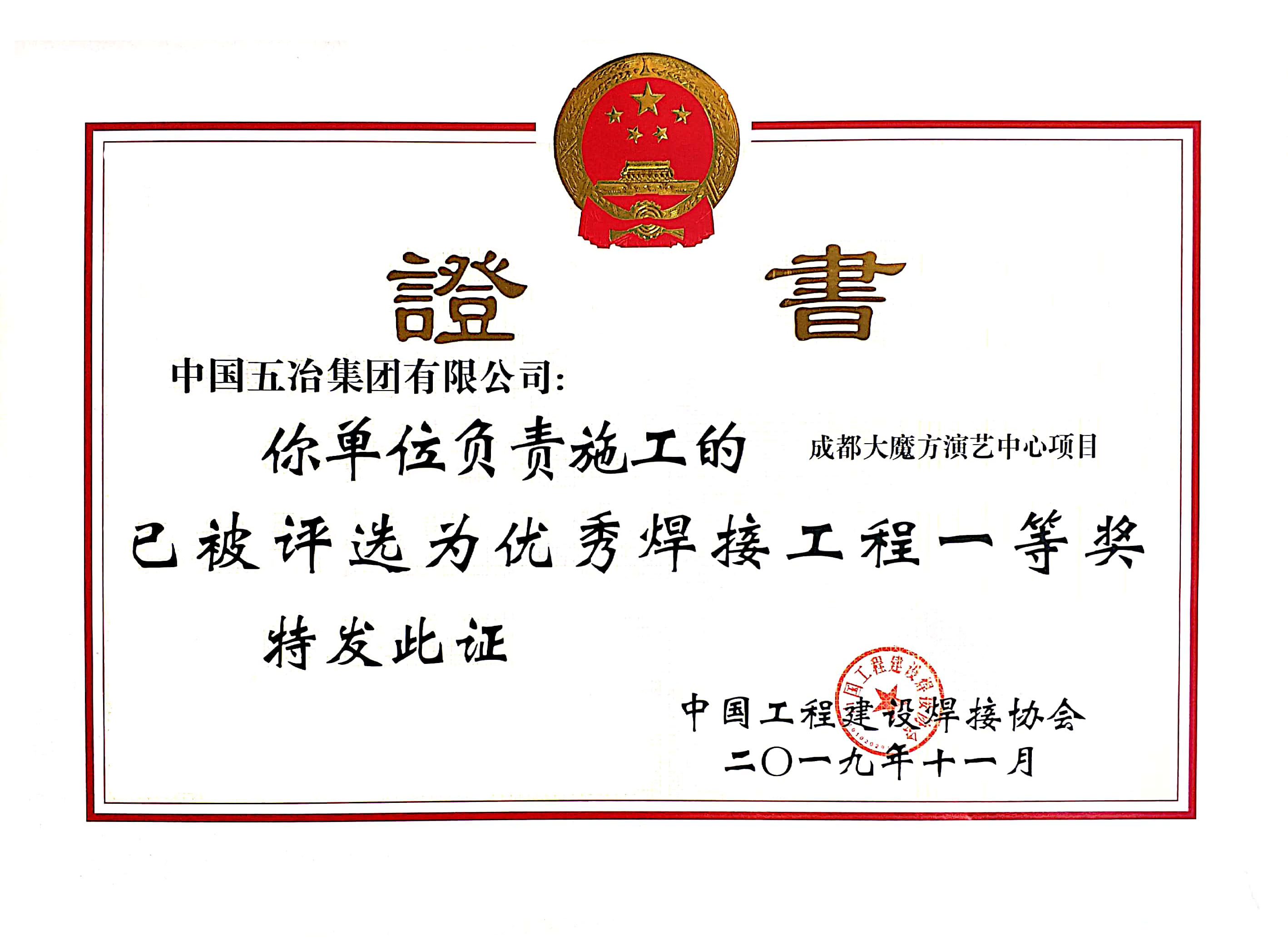成都大魔方演藝中心項目-2019年度全國優秀焊接工程一等獎