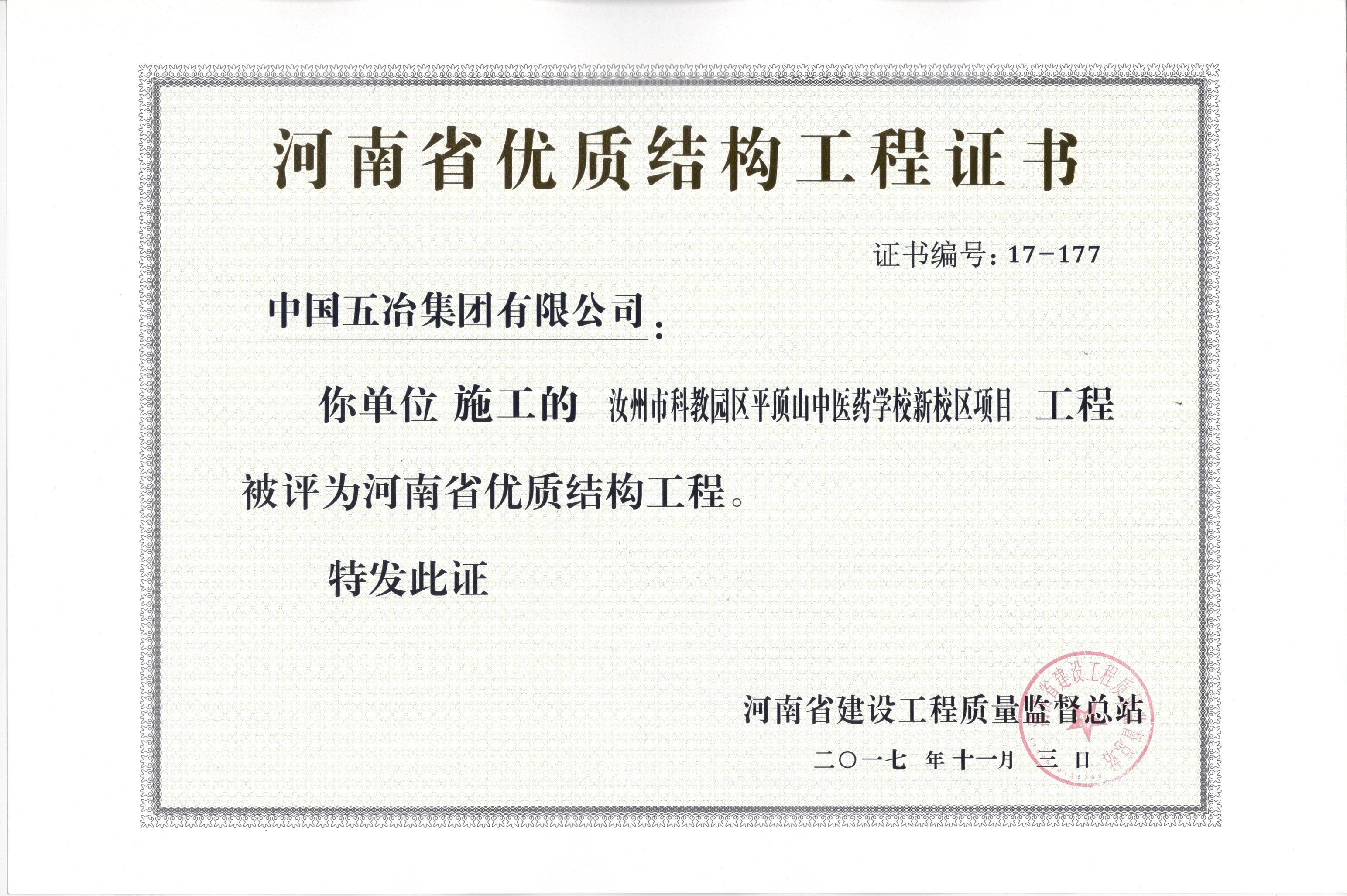 汝州市科教園區(qū)平頂山中醫(yī)藥學(xué)校新校區(qū)項(xiàng)目榮獲2017年河南省優(yōu)質(zhì)結(jié)構(gòu)工程獎(jiǎng)
