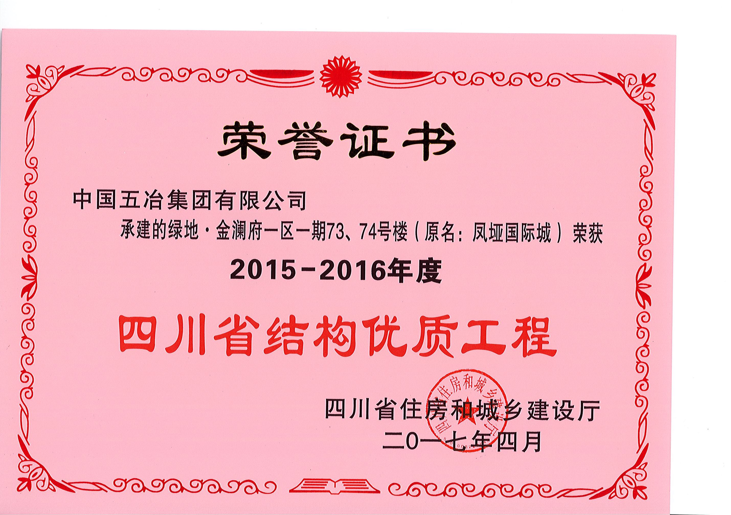 綠地.金瀾府一區(qū)一期73、74號(hào)樓—2015-2016年度四川省結(jié)構(gòu)優(yōu)質(zhì)工程