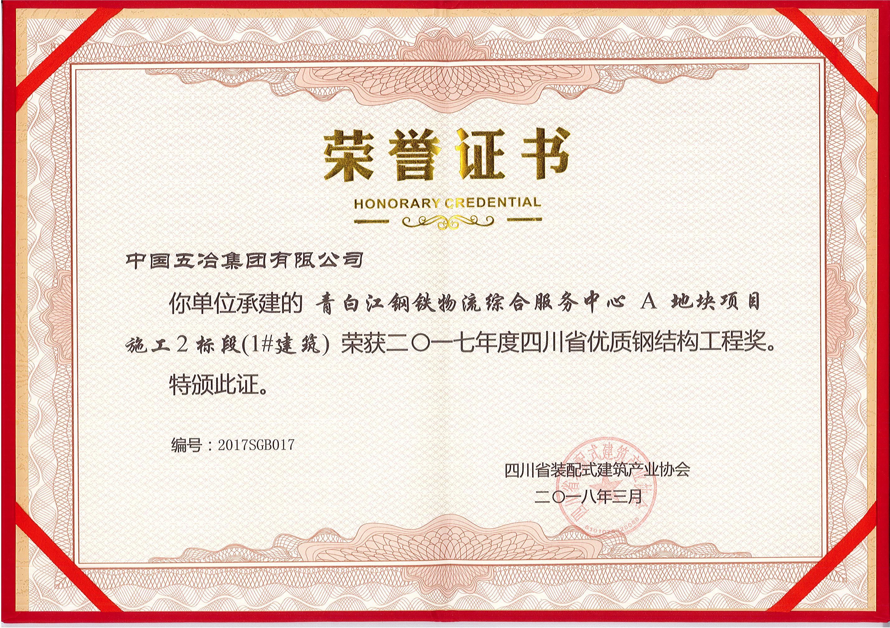 青白江鋼鐵物流綜合服務(wù)中心A地塊項(xiàng)目(1#建筑)—2017年度四川省優(yōu)質(zhì)鋼結(jié)構(gòu)工程獎(jiǎng)