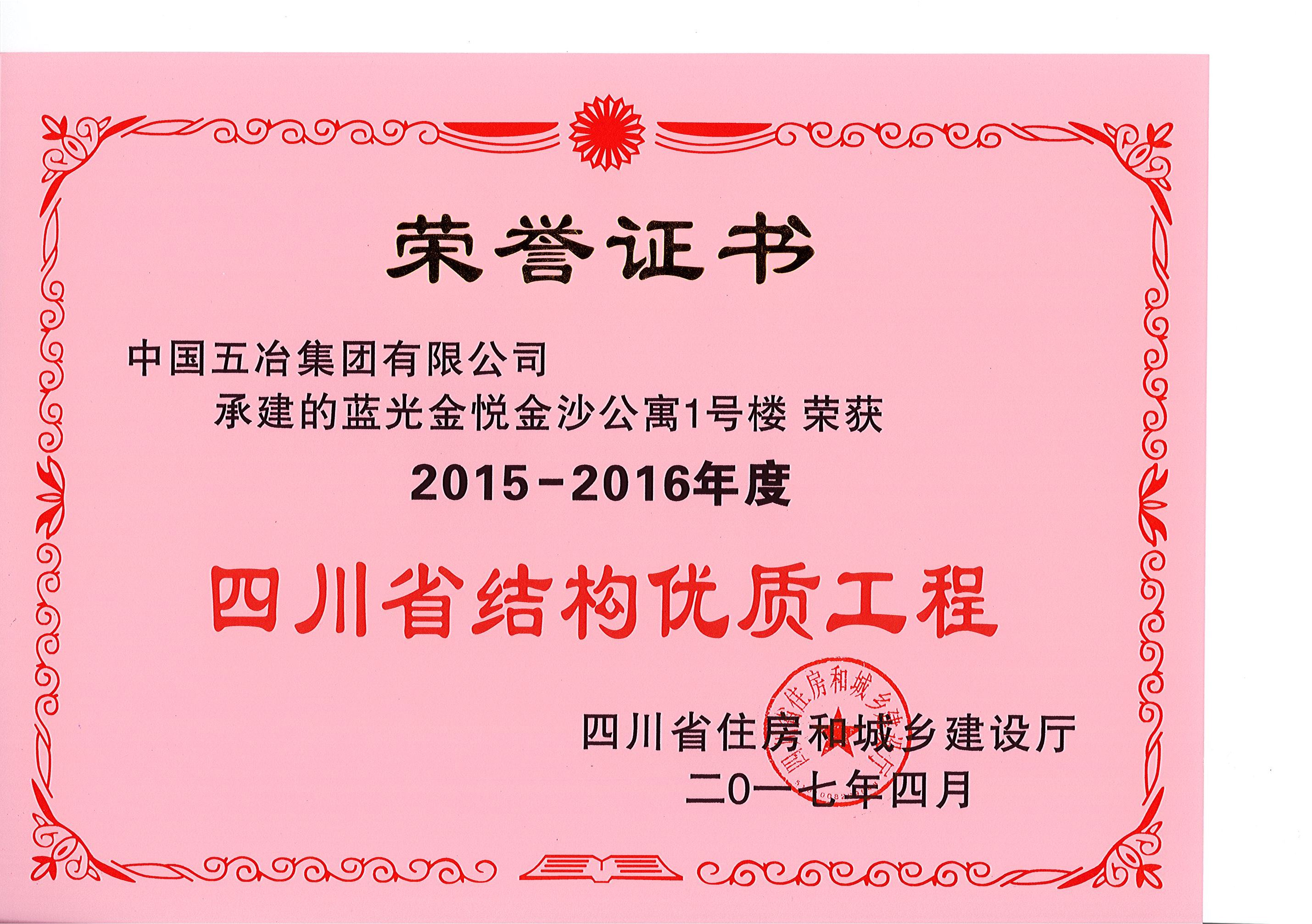 藍(lán)光金悅金沙公寓1#樓—2015-2016年度四川省結(jié)構(gòu)優(yōu)質(zhì)工程
