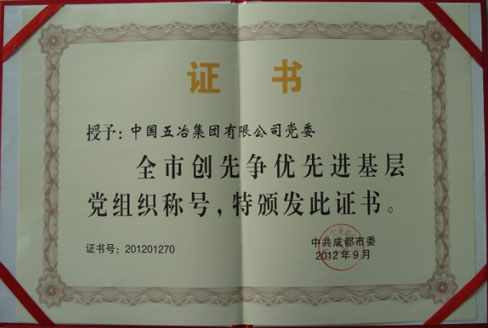 ??? 近日,中共成都市委對2010-2012年度全市創先爭優先進基層黨組織和優秀共產黨員進行了表彰,中國五冶集團有限公司黨委被授予了“全市創先爭優先進基層黨組織”稱號。