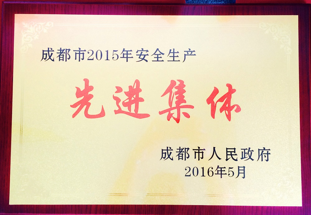 2016年5月,中國五冶集團榮獲成都市2015年安全生產先進集體稱號。