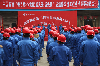 為積極響應成都市委、市政府“奮戰180天全面完成‘兩快兩射兩環’工程建設動員大會”的要求,12月6日,中國五冶集團成溫路改造工程大干180天勞動競賽動員大會在項目現場舉行。中國五冶集團副總經理田舜、工會、文化、安全、工程等部門負責人,參戰的路橋公司、上海機械化公司、鋼構公司、四公司相關領導,項目部全體員工以及項目4個工區管理人員代表共約100余人參加了動員會。