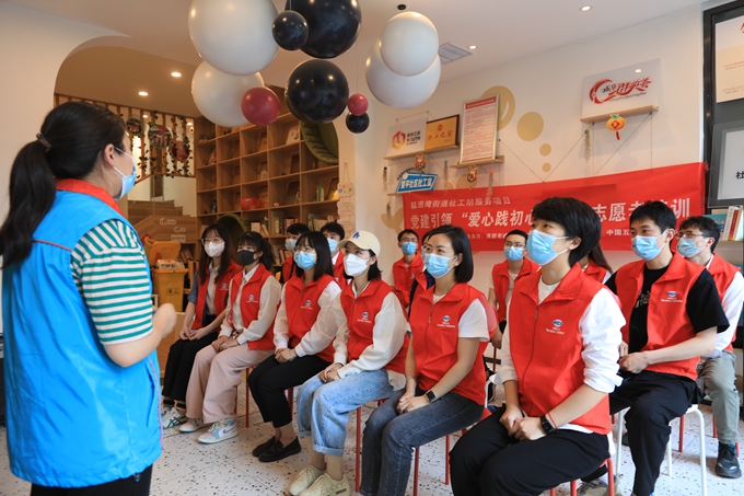 活動過程中,五冶團員、青年志愿者在愛有戲專業社工的帶領下深度了解了義倉物資入庫到發放的流程,進行了現場觀摩。同時,愛有戲還對參與活動的五冶團員、青年志愿者進行了志愿服務專題培訓,介紹了當前部分困境兒童現狀和服務情況,講授了對困境兒童開展針對性服務和陪伴的技巧,進一步提升了大家開展志愿服務專業能力。