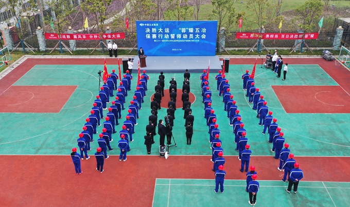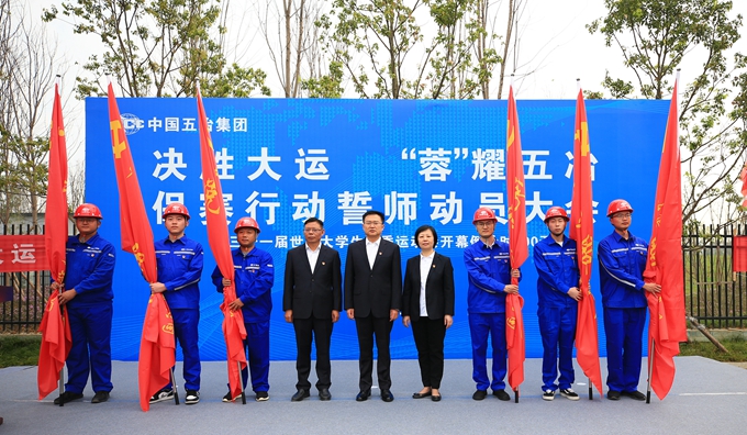 為做好大運會各項保賽準備工作,確保大運會圓滿成功,3月18日,第31屆世界大學生夏季運動會倒計時100天之際,中國五冶集團在大運會主會場東安湖公園召開“決勝大運‘蓉’耀五冶”保賽行動誓師動員大會。集團公司領導陳陽、周悅靜、譚興山,保賽領導小組成員,相關參建單位專職副書記、施工副總經理,保賽黨員服務隊成員等參加活動。