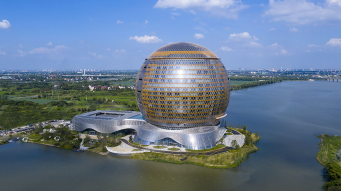 湖州太陽(yáng)酒店項(xiàng)目位于浙江湖州南潯區(qū),是主體直徑97.2米的世界最大球體建筑,也是集住宿、餐飲、娛樂(lè)、旅游等多功能于一體的五星級(jí)綜合性酒店。項(xiàng)目通過(guò)深度應(yīng)用建筑信息技術(shù),建立了覆蓋各個(gè)專(zhuān)業(yè)和建設(shè)全周期的“全科醫(yī)生檔案”,不僅為施工質(zhì)量及安全保駕護(hù)航,同時(shí),針對(duì)球體鋼結(jié)構(gòu)、單層穹頂網(wǎng)殼提升、弧形管道深化及預(yù)制等方面難題重點(diǎn)突破,讓太陽(yáng)得以驚艷“閃耀”,成為湖州的城市地標(biāo)和熱門(mén)網(wǎng)紅打卡點(diǎn)。