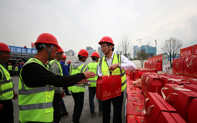 朱永繁董事長一行先后來到成都創(chuàng)智科技產(chǎn)業(yè)園區(qū)、交子公園東區(qū)A地塊項目現(xiàn)場,仔細(xì)檢查安全生產(chǎn)工作落實和執(zhí)行是否到位,詳細(xì)了解項目策劃、工期、技術(shù)、質(zhì)量、經(jīng)營等方面管理情況,并向一線員工送上豬肉、堅果、牛奶、涼茶、水果、餅干、方便面、礦泉水等慰問品。