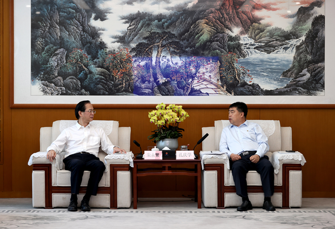 5月16日下午,集團公司黨委書記、董事長朱永繁拜會陜西交控集團黨委書記、董事長孔慶學,雙方就加合作進行洽談。