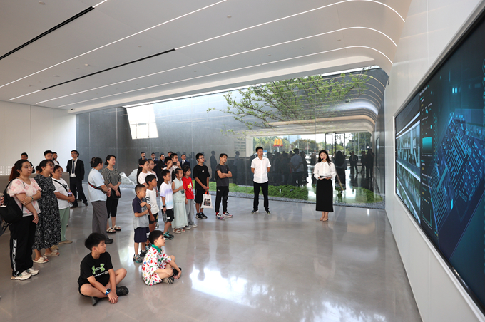 活動當天,現場工作人員帶領孩子和工友們走進中國五冶集團科技中心大廈,沿著精心設計的路線,深度探索這座零碳建筑的“科技密碼”,大家觀看了中國五冶集團自主研發的建筑智慧低碳運維系統,并參觀了多個頂級科學家領銜的創新工作室和建筑工業化與智能建造、城市更新、智慧機電、公園城市、綠色與智慧巖土等八大工程技術研究中心,全方位體驗了零碳建筑的科技魅力。參觀結束后,“裝配式建筑科普講座”精彩開講,工作人員通過生動的圖文視頻,深入淺出地講解了裝配式建筑與傳統建筑的區別,帶領大家穿越不同歷史時期,感受裝配式建筑的發展脈絡,了解裝配式建筑的諸多優點和未來發展前景,讓孩子們對裝配式建筑有了全新的認知。隨后,“趣味小試驗”環節將活動推向高潮,孩子們每4人被分成1個小組,展開了一場緊張而歡樂的“建筑搭建大比拼”,大家齊心協力,將零散構件組建成精巧的建筑模型,優先完成搭建的小組收獲了精美獎品,現場歡聲笑語不斷。活動結束后,工作人員向全體兒童贈送了文具用品并給予祝福,鼓勵他們好好學習、健康成長。