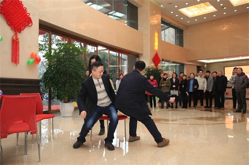 此次迎新春活動(dòng)以游戲?yàn)橹?,活?dòng)現(xiàn)場(chǎng)洋溢著喜慶的氣氛,熱鬧非凡,激動(dòng)人心的“搶凳子”“三人四足”等互動(dòng)游戲不斷引發(fā)陣陣笑聲,最后,活動(dòng)在團(tuán)體拔河游戲的聲聲的吶喊和歡呼雀躍之聲中落下帷幕。
