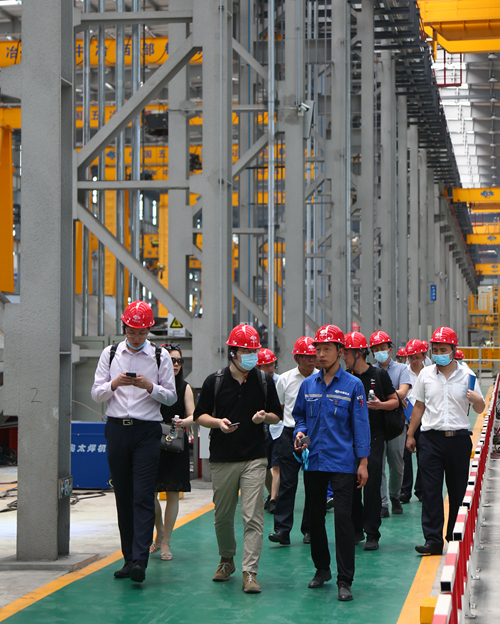 隨后,考察團一行現場參觀了中國五冶已建成投產的先進的PC及鋼結構生產廠,對有關產品、產能、市場占有率、技術、成果等進行了詳細深入的了解,目睹了國內最大最先進的鋼板預處理生產線、國內最先進的數控切割機、國際領先水平的自動化焊接機器人、業內最大的矯正機等“高精尖”先進設備,對映入眼前的現代化、高水平的產業園區所嘆服,紛紛點贊中國五冶的綜合實力,并表示建筑科技產業園的技術實力和裝備水平達到了國內和行業一流,通過技術驅動高質量建造,打造裝配式全產業鏈優勢,從而占領未來建筑發展高地,這種理念和思路具有很強的前瞻性,集中體現和展示了五冶一流的建造方式、商業模式和工程總承包實力。